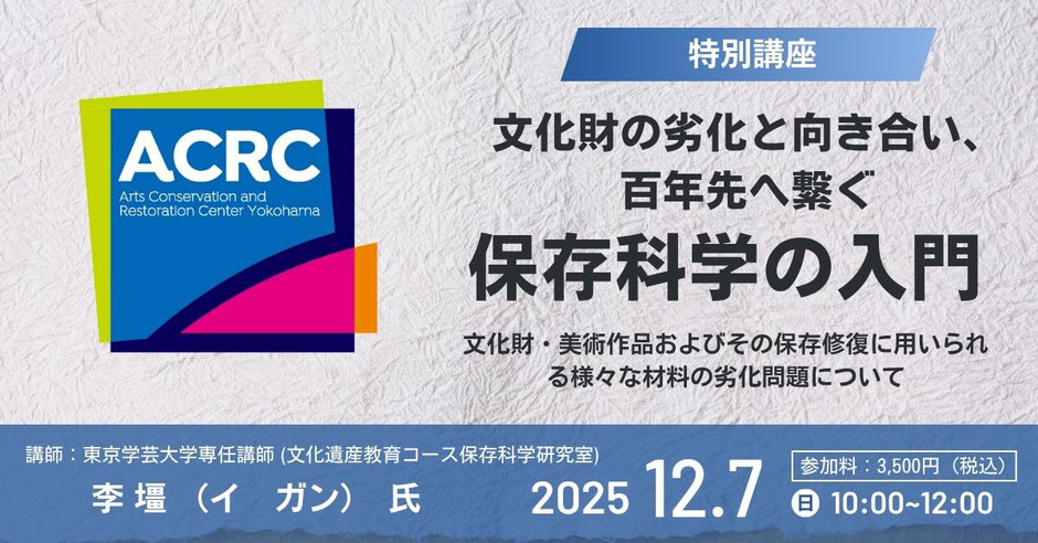 【お知らせ】特別講座「文化財の劣化と向き合い、百年先へ繋ぐ保存科学の入門」 2025年10月8日(水)募集を開始いたしました
