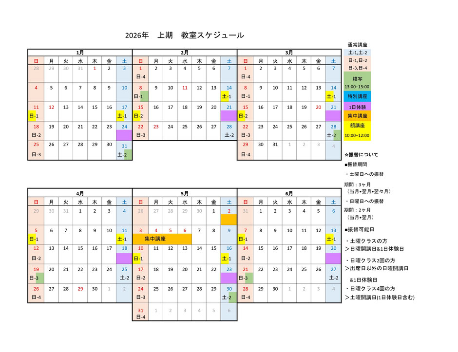 2026年の1日体験コースの予定【上半期】※下半期は決まり次第こちらのホームページにアップ致します